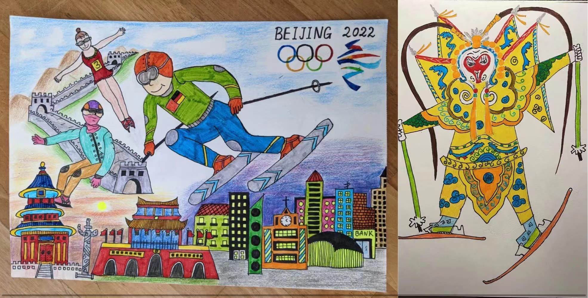 同學(xué)們在繪畫作品上寫滿了“Beijing 2022”“我愛中國”“中國是偉大的國家”“中加手拉手”,表達(dá)了他們對北京冬奧會最真摯美好的祝福。