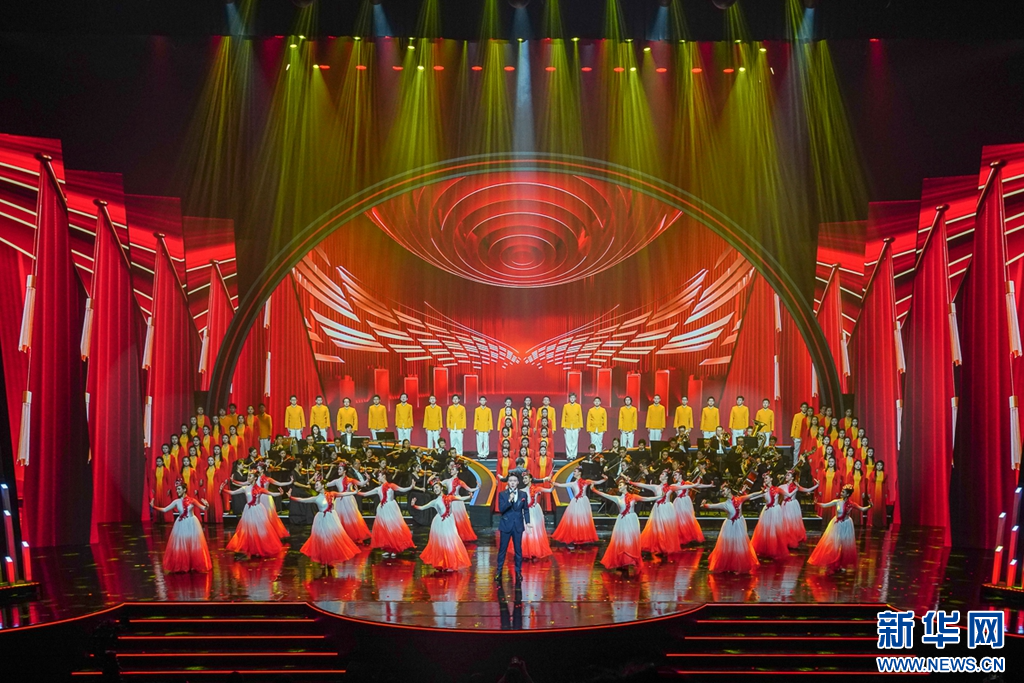 這是7月17日晚上拍攝到的晚會(huì)尾聲,交響合唱《人民至上》。新華網(wǎng) 肖和勇 攝