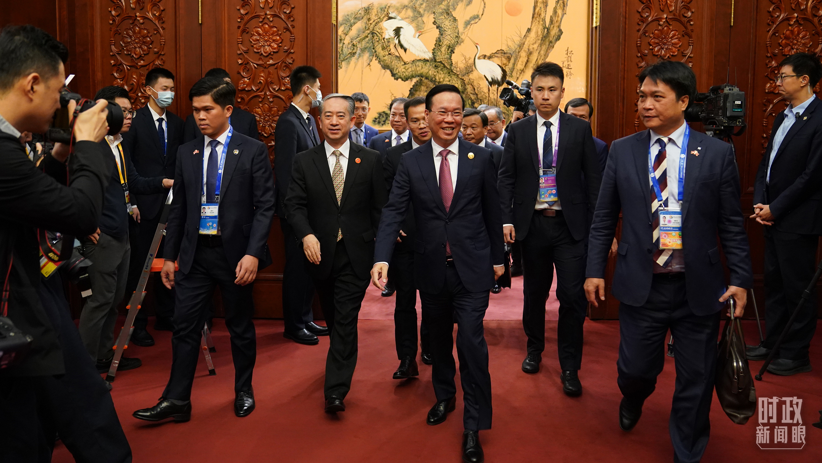越南國(guó)家主席武文賞走出會(huì)見(jiàn)廳。(總臺(tái)國(guó)廣記者李晉拍攝)