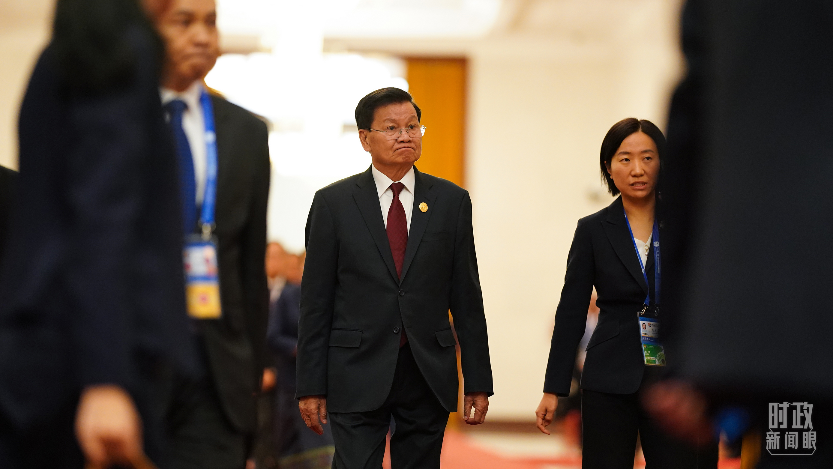 老撾人民革命黨中央總書記、國(guó)家主席通倫走向會(huì)見(jiàn)廳。(總臺(tái)國(guó)廣記者李晉拍攝)